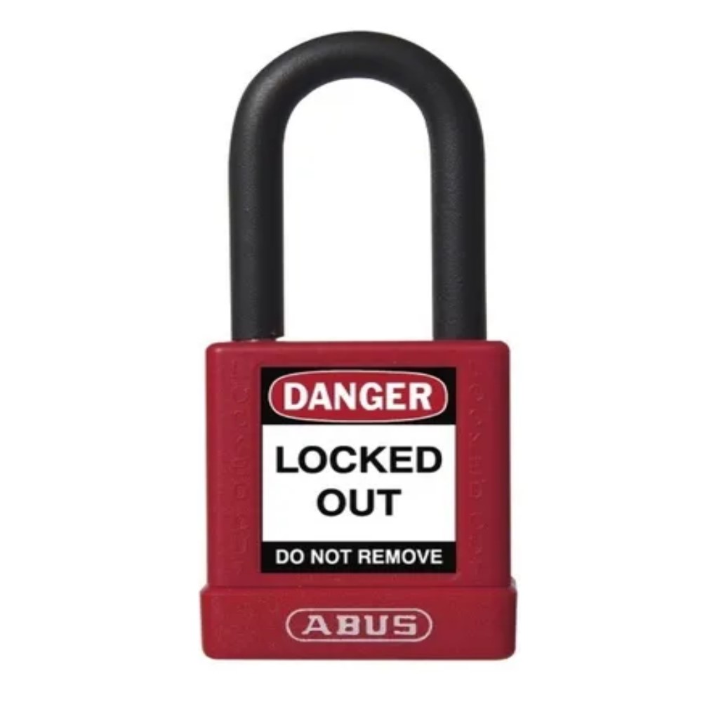 ABUSCandado bloqueo dielectrico (LOTO) D6.5mm, de aluminio c/cubierta de plastico, 1 llave, color rojo, mca. ABUS 74-40